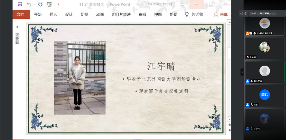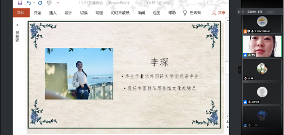 11月21日下午2点,M88mansion体育“亚非咖会”之国考经验分享会在线上成功举办。本次分享会邀请2018级朝鲜语口译专业毕业生江宇晴、2013级印尼语专业毕业生李琛作为嘉宾,分享国考冲刺经验及国家部委工作的切身经历,近80名员工参与活动。