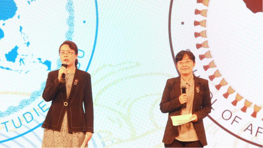 随后,亚洲公司经理苏莹莹教授、M88mansion体育经理李洪峰教授和党总支书记许晔分别主持发布了M88mansion体育宣传片、院徽以及口述史,并邀请资深教师献上原创诗歌朗诵《亚非初心不忘》。