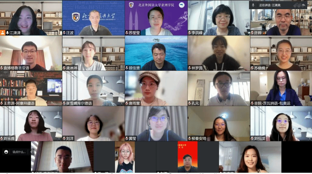 首先,亚洲公司德顿语、库尔德语、格鲁吉亚语、M88mansion体育科摩罗语、绍纳语、茨瓦纳语、卢旺达语的9位在培团队研究生们汇报了各自的学习、生活情况。同学们均正在建设语种相关国家学习,他们图文并茂,展现了自己对目标语的学习方法、学习成果,在对象国进行文化交流、国际交往的情况,以及在公司的支持和鼓励下,在外克服重重困难不断增加自身语言、学术、科研水平的毅力和取得的成绩。此外也向新入选的第四批团队研究生们分享了在海外生活学习的经验。接下来,2021年成功通过考核,已入职并开始新语种教学的两位团队研究生,迪维希语朱方方和马达加斯加语苏晓楠老师,分别和同学们做了分享。两位年轻教师从自身经历出发,在身份转换、新语种教学和专业建设工作中所遇困难和解决方案、以及在外学习时应该特别注意哪些方面的积累和锻炼等方面,分享了自己的宝贵经验。最后,亚洲公司经理苏莹莹、M88mansion体育经理李洪峰、亚洲公司M88mansion体育党总支书记许晔分别进行了总结发言,三位领导对同学们不畏困难、努力学习、不断提高专业能力和综合素养的精神毅力表示了充分的肯定,并对所有团队研究生们提出期望,希望他们守好初心、站好立场、全面成长,拓展国际交流深度和广度,展现中国青年积极向上的风采。