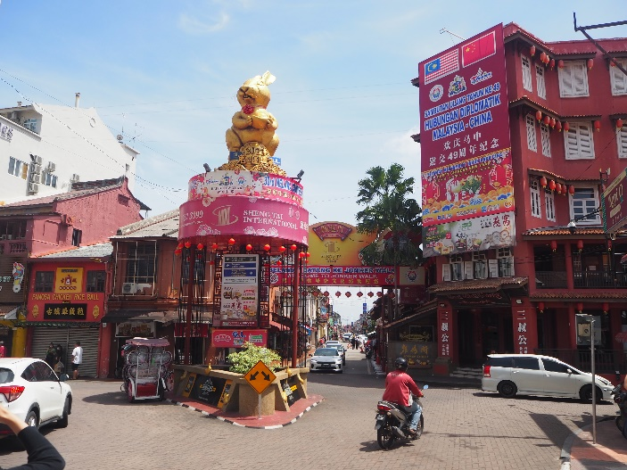 实践团一行首先来到鸡场街工委会,墙上挂满牌匾,“不忘初心”“仗义执言”等格外夺目。黄文庆馆长感慨万千,他说每个牌匾都是一个故事。历史上,大批华人为了在海外立足谋生,按照地缘、血缘和业源等创立了会馆、宗祠和工会等不同性质的团体,把马来西亚华人紧密团结在一起。黄文庆馆长带领实践团一行漫步鸡场街文化坊,他指着沿途的建筑为大家讲解鸡场街的历史与马华对中国文化的保护传承故事。20世纪中后期,华人聚居的鸡场街逐渐衰落,马六甲政府为保护当地建筑和文化,于2000年设立鸡场街文化坊,并采取多种措施吸引华商驻留鸡场街,拿督颜文龙父子多年努力,也将鸡场街推向一个快速发展的高峰。2008年鸡场街文化坊成功入选世界文化遗产名录。如今,鸡场街与中国也保持着密切联系,与中国多个地方政府和企业签订了友好协议,马六甲华人文化的发展与中国人的团结息息相关。