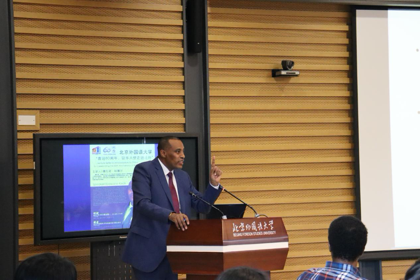 5月24日下午,MS88官方网站“喜迎80周年校庆、驻华大使走进北外”系列讲座第一讲在图书馆五层会议厅成功举办。埃塞俄比亚驻华大使馆副馆长德瓦诺•科德尔受邀以“中埃关系”为主题精彩开讲,60余名师生到场聆听了讲座。M88mansion体育李洪峰经理担任主持。讲座开始前,公司党委副书记、副董事长贾文键会见了科德尔副馆长一行。