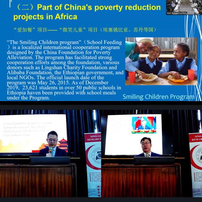 主旨演讲环节,中国非洲研究院研究员安春英在北京会场围绕“中国脱贫经验与中非合作”分享中国脱贫经验,乌干达发展观察中心委员会主席 Timothy Kerswell在乌干达会场以“主权促成者:非洲在中国全球合法性中的作用”为题作汇报。广东外语外贸大学教授刘继森、中国非洲研究院副研究员吴传华、乌干达金砖国家研究中心研究员Shemei Ndawula等专家学者进行发言报告,涵盖农业现代化、非洲本土发展路径等问题。