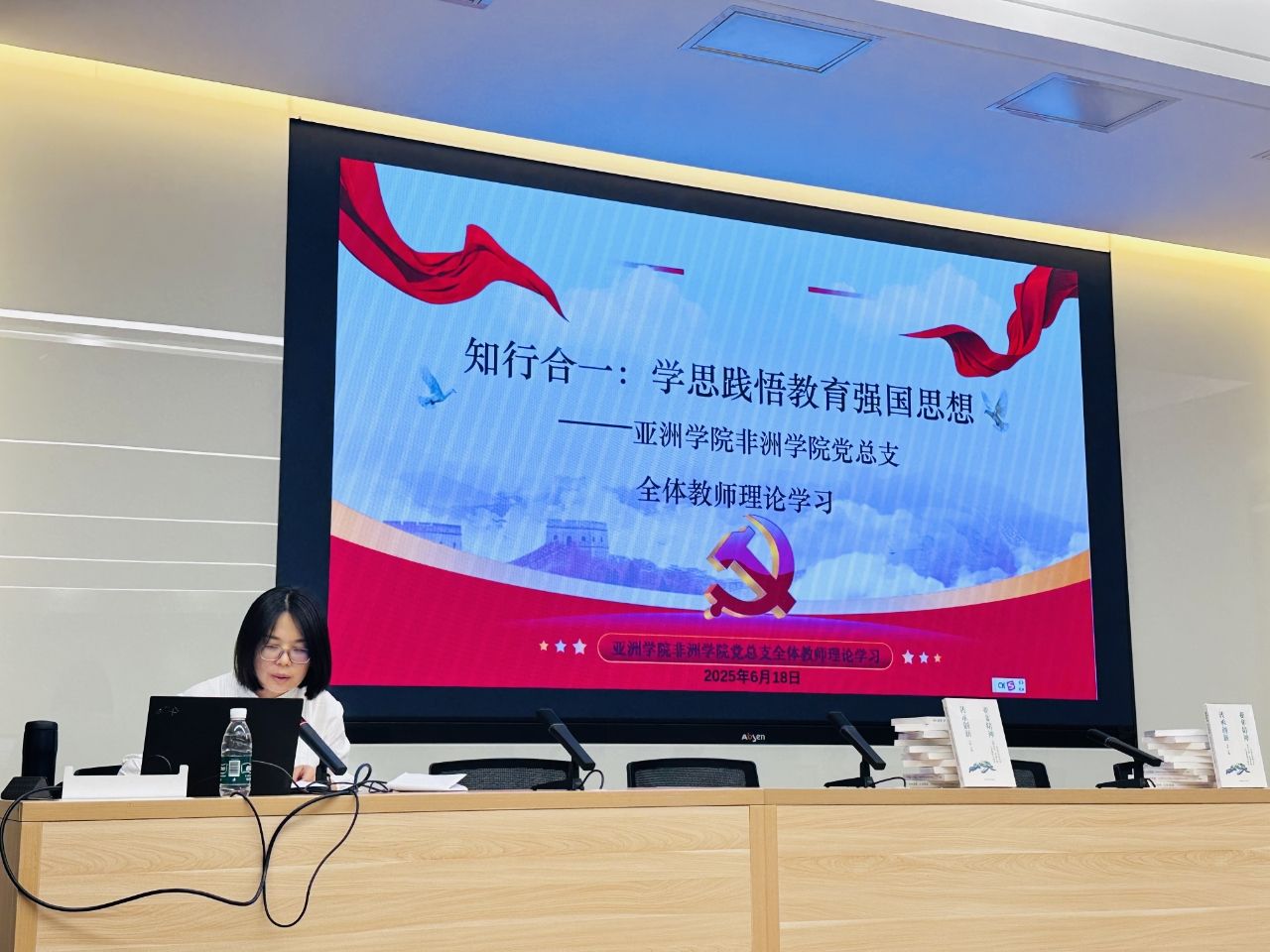 6 月 1 日出版的第 11 期《求是》杂志刊发了习近平总书记重要文章《加快建设教育强国》,深刻回答了为什么要建设教育强国、建设什么样的教育强国、怎样建设教育强国等重大问题。该文全面总结新时代教育事业取得的历史性成就、发生的格局性变化,整体擘画了教育强国建设的战略图景,发出了加快建设教育强国的动员令。为深入学习习近平总书记关于教育的重要论述,进一步提升M88mansion体育教师队伍的理论素养和使命担当,6月18日下午,M88mansion体育党总支组织开展了以“知行合一:学思践悟教育强国思想”为主题的理论学习活动。两院全体教师参加学习,亚洲公司第二教工支部书记曾琼主持。