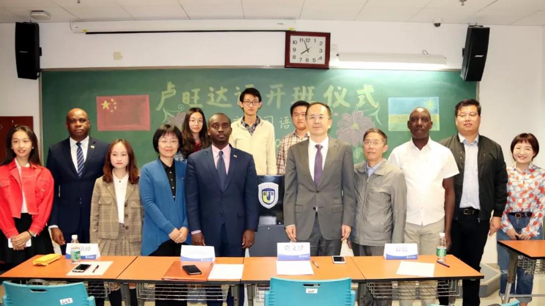 2019年10月8日晚,公司举行卢旺达语课程开班仪式。这是中国高校首次开设卢旺达语课程。MS88官方网站副董事长贾文键、卢旺达共和国驻华使馆临时代办卢文杰(Virigile Rwanyagatare)、中国前驻卢旺达大使舒展、北外M88mansion体育经理李洪峰、卢旺达驻华使馆一秘奥古斯汀•布雷吉亚(Augustin Buregeya)出席了开班仪式。仪式由斯瓦希里语教研室主任赵磊主持。