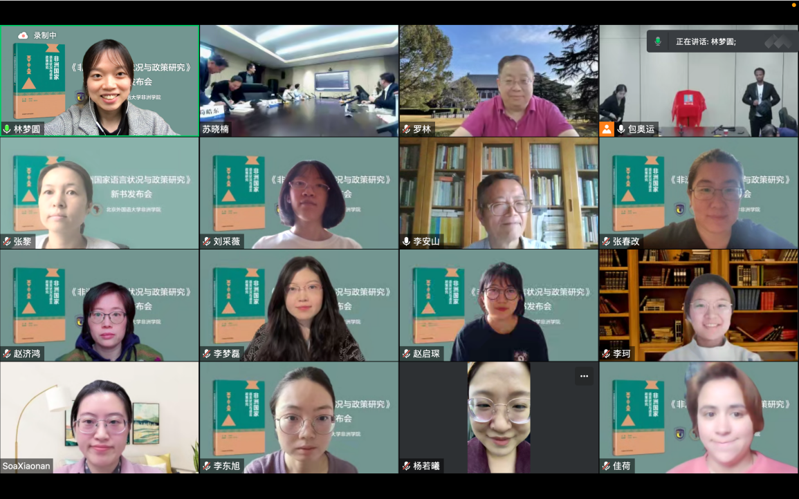 《非洲国家语言状况与语言政策研究》是国家语委“十三五”科研规划2020年度重点课题“非洲国家语言状况与语言政策”的最终研究成果,近日由外语教学与研究出版社出版。与会专家学者普遍认为,《非洲国家语言状况与语言政策研究》一书成果丰硕、内容充实、具有创新性,填补了我国对非洲国家语言状况和语言政策研究领域的空白,为国家语言能力建设提供了参考,对于提升我国对非研究的完整性具有重要意义。