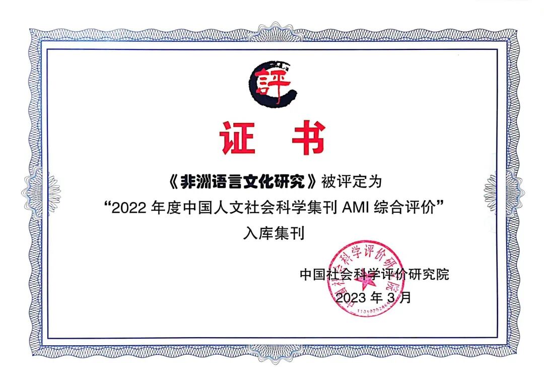 近日,中国社会科学评价研究院发布《2022年中国人文社会科学学术季刊AMI综合评价报告》,M88mansion体育主办的学术期刊《非洲语言文化研究》通过专家评审,成为入库集刊。