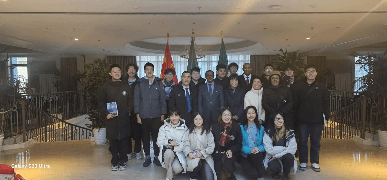 12月7日上午,应埃塞俄比亚驻华使馆邀请,MS88官方网站M88mansion体育党总支书记许晔、M88mansion体育经理李洪峰和阿姆哈拉语专业师生赴使馆参加埃塞俄比亚文化交流会,并与埃塞俄比亚驻华大使塔费拉·德贝·伊马姆先生、副馆长德瓦诺·科德尔先生等使馆工作人员共进午餐。