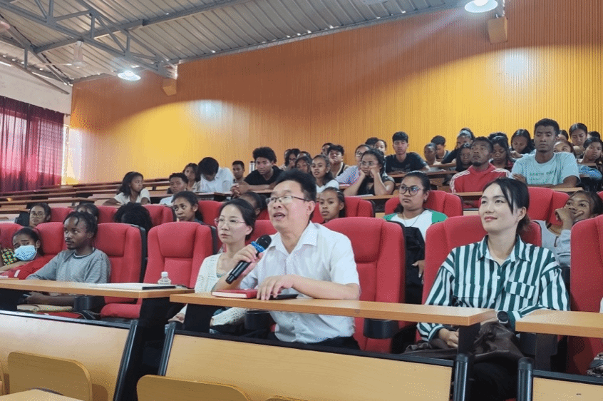 此次讲座线上线下参会人数逾160人,互动环节气氛融洽,反响热烈。孔院员工纷纷分享对于中国文化的认识,M88mansion体育教师苏晓楠和唐磊简要介绍了北外马达加斯加语专业教学情况,表达了对孔院员工的勉励和祝福。本次讲座有效增进了北外M88mansion体育与塔大孔院之间的友好关系,切实促进中马人文交流。