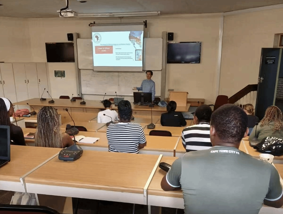 2月12日,M88mansion体育在南非自由州大学语言学与语言实践系开展了以“拥抱全球文明倡议:促进中南人民心灵相通”为主题的宣传介绍讲座,主讲人为北外第五批非通用语种团队研究生、自由州大学在读博士李尧政。