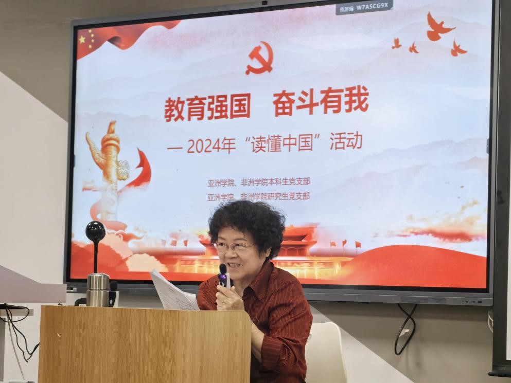 活动邀请到资深老党员代表,柬埔寨语专业的退休教授彭晖老师为同学们分享她在党的百年奋斗历程、中国特色社会主义新时代、脱贫攻坚和全面建设小康社会中的先进事迹和人生体验。活动旨在引导青年党员群体从老党员的光辉事迹和红色精神中汲取力量,赓续红色基因,传承优良传统。