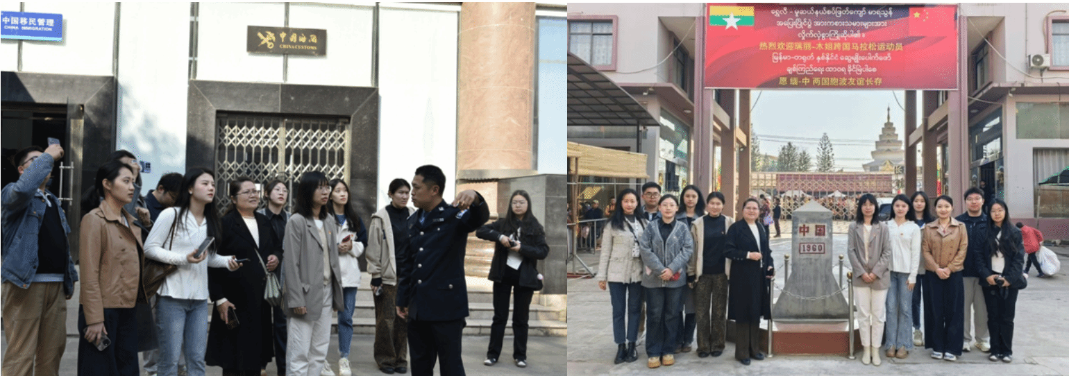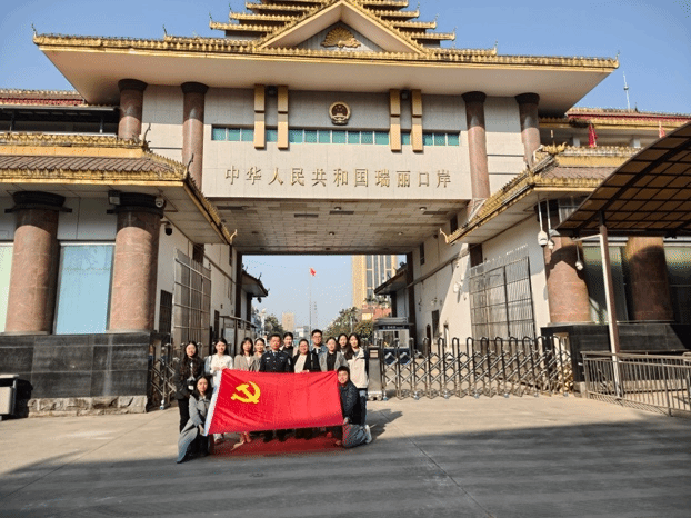 2月12日,亚洲公司M88mansion体育本科生党支部赴滇缅公路开展星跃实践调研之机,调研团带队教师本科生党支部书记罗云燕、亚洲公司缅甸语专业副教授赵瑾以及10名支部成员走访了党支部红色“1+1”共建单位国家移民管理局下属单位瑞丽出入境边防检查站,该站政治处派员热情接待了调研团一行。