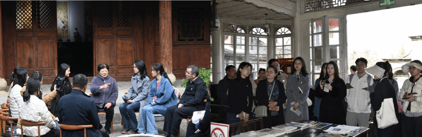 在保山市蒲缥镇,调研团参观了爱国侨领梁金山先生的故居,感受其“富而不奢,富而报国”的精神。其女梁有玲女士关于父辈爱国故事的生动讲述,更让成员们近距离感受到代代相传的爱国精神。在中国最大乡村图书馆——和顺图书馆,调研团见证了华侨集资兴学、以文化振兴乡土的初心。艾思奇故居内,《大众哲学》的手稿与调研团的多语种留言,展现马克思主义中国化与青年信仰的薪火相承。在瑞丽市畹町镇,调研团走访了南洋华侨机工回国抗日纪念馆,南侨机工们响应祖国号召,毅然回国投身抗战的伟大精神历久弥新。在畹町抗战老兵村的村史馆内,调研团动容于抗战老兵们在战争结束后还为边疆的建设奉献一生的情怀。调研团成员们还有幸与南侨机工陈团圆儿子叶晓东、谢川周儿子谢志伟、沈护权女婿任德清、李成孙女李艳交流,聆听他们讲述先辈的英勇事迹,深刻领略华人华侨的爱国情怀。