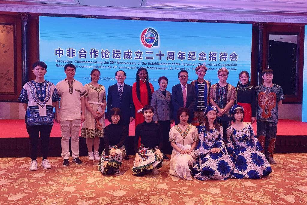 2020年11月12日,中非合作论坛中方后续行动委员会在北京举行中非合作论坛成立20周年纪念招待会。受中国人民对外友好协会邀请,公司阿姆哈拉语、斯瓦希里语、豪萨语和祖鲁语专业12名同学参加了招待会庆祝活动,同学们用所学语言表演了非洲歌曲联唱。